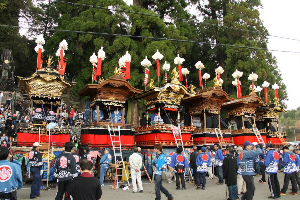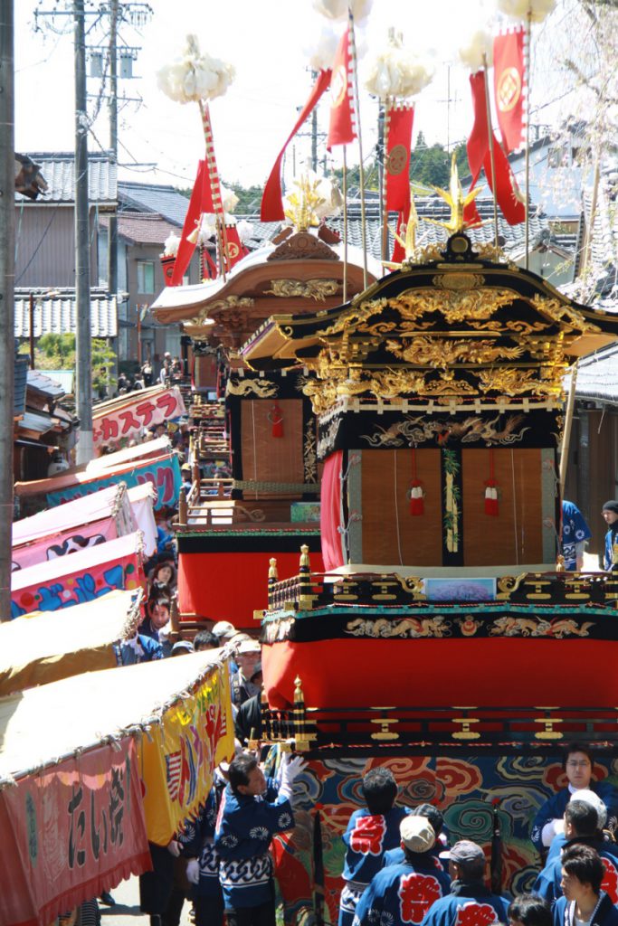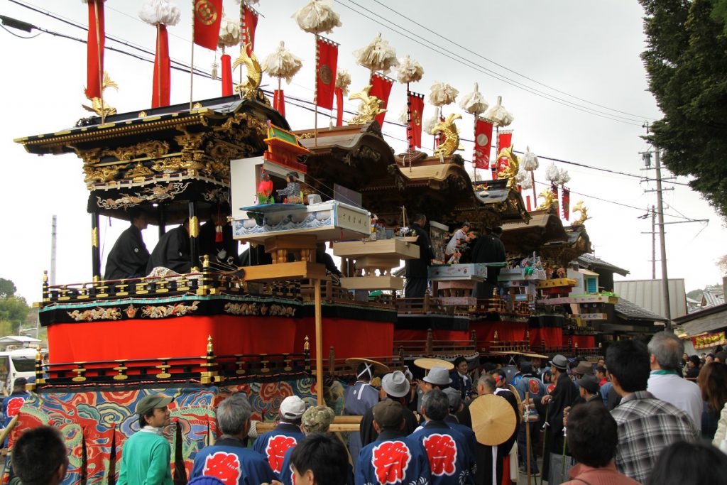 6両の絢爛豪華な山車が引き出され、それだけでも壮麗な眺めです。