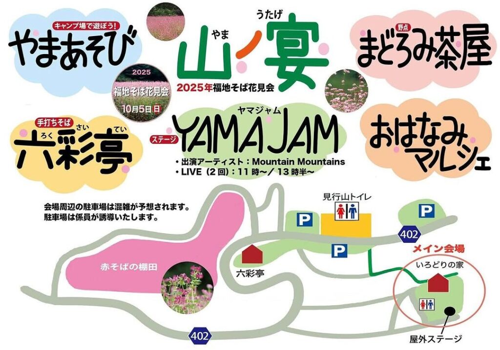 詳しくはInstagramアカウント『山ノ宴(ヤマノウタゲ) 福地そば花見会2025』をチェック!