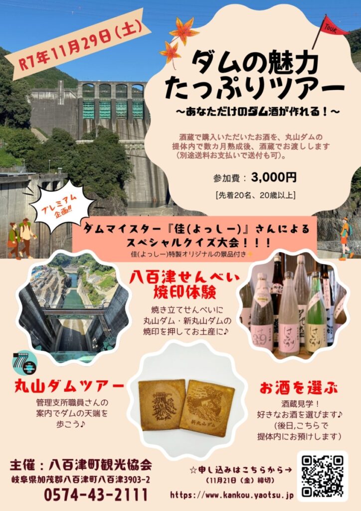 ダムの魅力たっぷりツアー開催 八百津町観光協会 19時間前 ダムツアーを開催します!ダムマイスター「佳(よっしー)」さんや丸山ダム管理支所による案内もあり、普段とは違った目線で楽しめること間違いなし!この機会に八百津の良さを体験してみてください!!